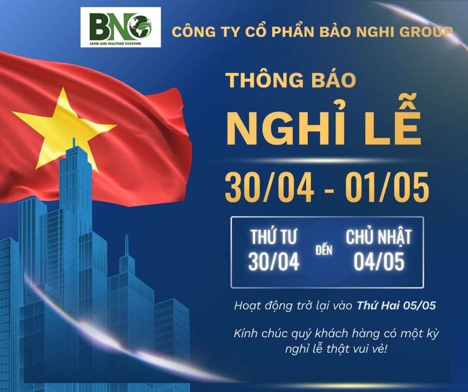 Công ty Cổ phần Bảo Nghi Group thông báo lịch nghỉ lễ 30/4 - 1/5 như sau: