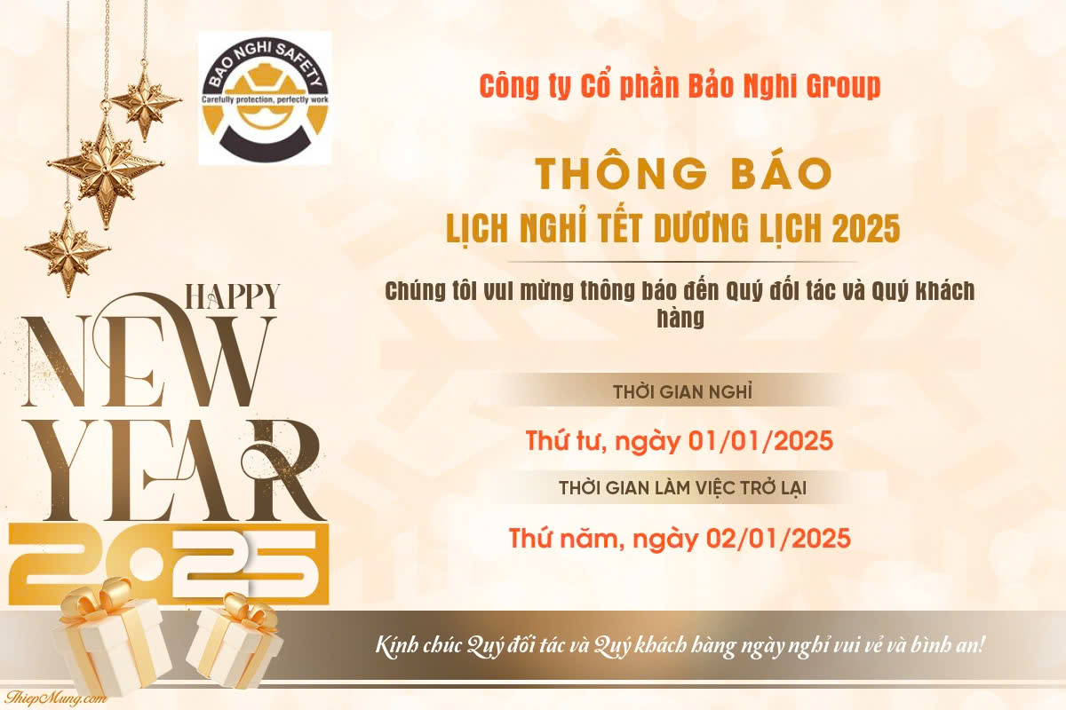 Công ty Cổ phần Bảo Nghi Group thông báo lịch nghỉ Tết Dương lịch 2025 đến quý khách hàng và đối tác như sau: