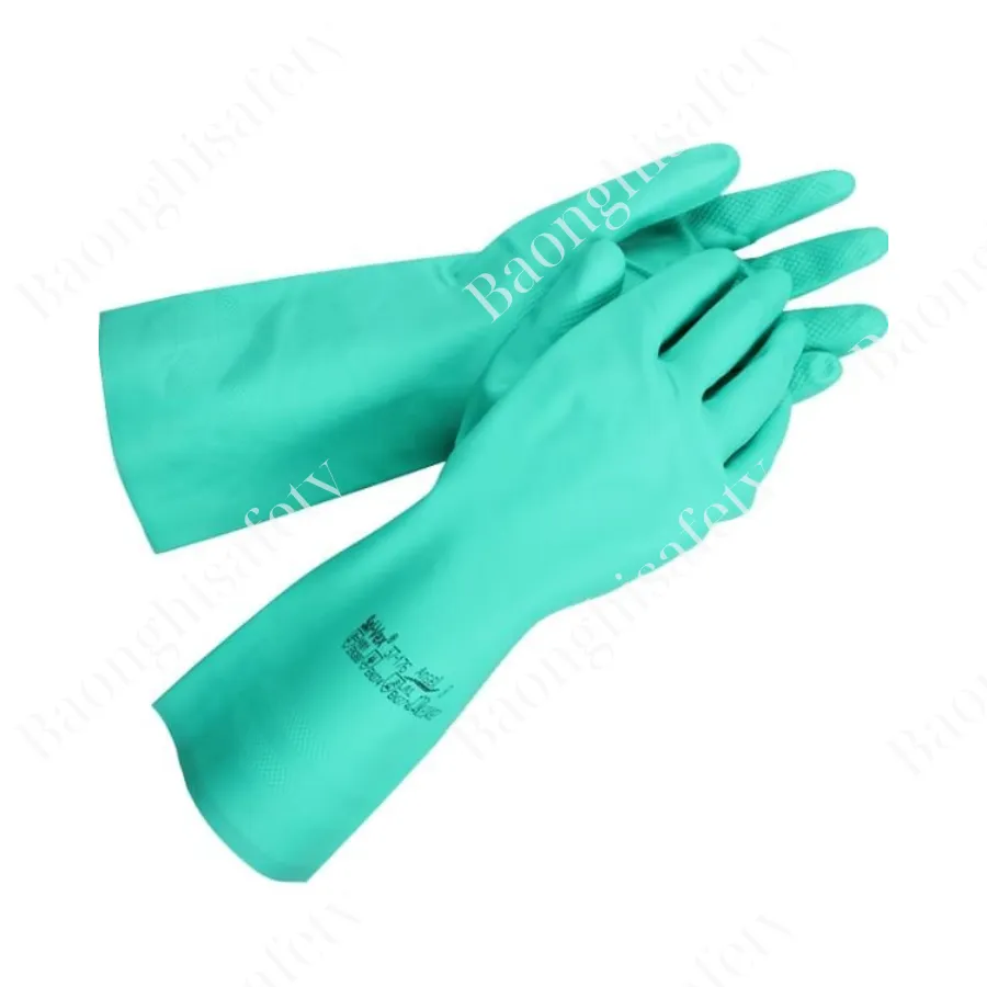 Chất liệu: Cao su tổng hợp Nitrile chống hóa chất, chịu mài mòn và đâm thủng tốt.