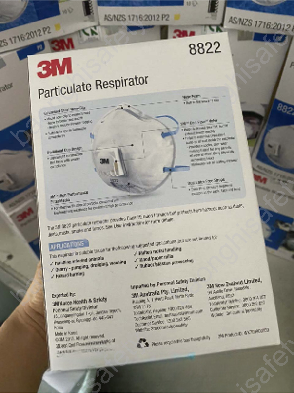 KHẨU TRANG 3M N95 - 8822 (USA) lựa chọn tối ưu cho những môi trường có nhiệt độ và độ ẩm cao, thời gian mang mặt nạ lâu. Ứng dụng trong môi trường đúc chảy kim loại, phòng lab, nông nghiệp, hóa dầu, những nơi có sự hiện diện của bụi và hóa chất, hơi hữu cơ.Van thở ra 3M™ Cool Flow™ làm tăng sự khô thoáng và thoải mái khi sử dụng, miếng điều chỉnh độ khít trên sống mũi dùng điều chỉnh để khít với tất cả người sử dụng và không để lại vết khi đeo trong thời gian dài. 3M đề nghị nên dùng trong môi trường hóa chất. Nồng độ của các khí này không được vượt quá tiêu chuẩn OSHA PEL hoặc giới hạn phơi nhiễm của chính phủ KHẨU TRANG 3M N95 - 8822 (USA) trọng lượng nhẹ, thoải mái và thuận tiện Dây đeo và các loại bằng cao su Vật liệu lọc carbon KHẨU TRANG 3M N95 - 8822 (USA) tương thích với hầu hết các mặt