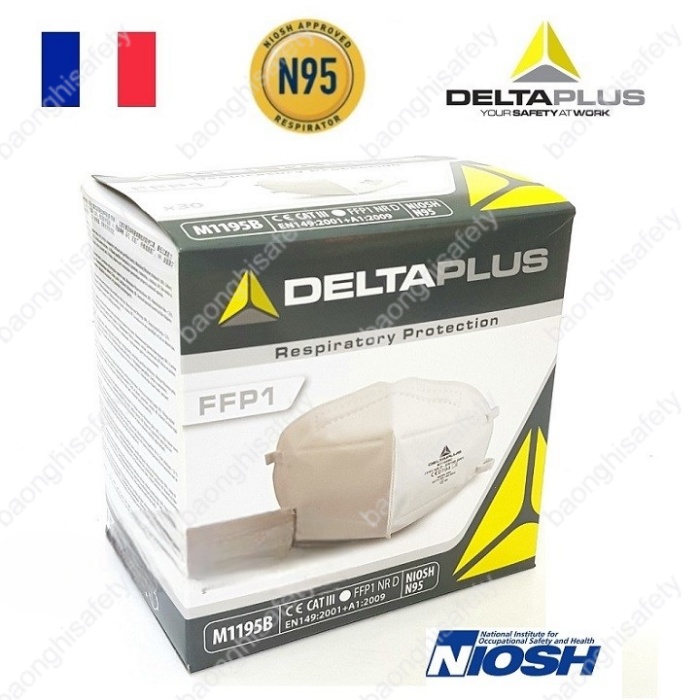 - Khẩu trang lọc bụi Deltaplus M1195B đạt tiêu chuẩn chất lượng Châu Âu EN149:2001 + A1:2009 FFP1, NIOSH N95 do National Institute for Occupational Safety and Health (Viện Sức khỏe và An toàn Lao động Quốc gia Hoa Kỳ) công bố.