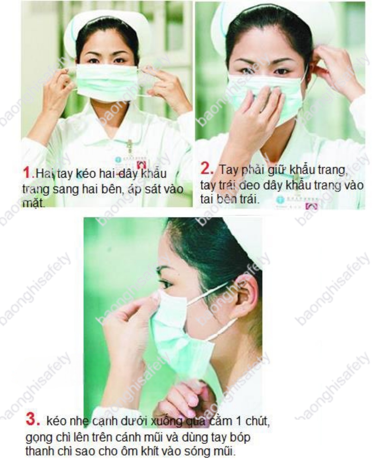 Thay khẩu trang ngay khi: Bị ẩm. bị dơ, ví dụ, máu dịch tiết bắn vào khẩu trang