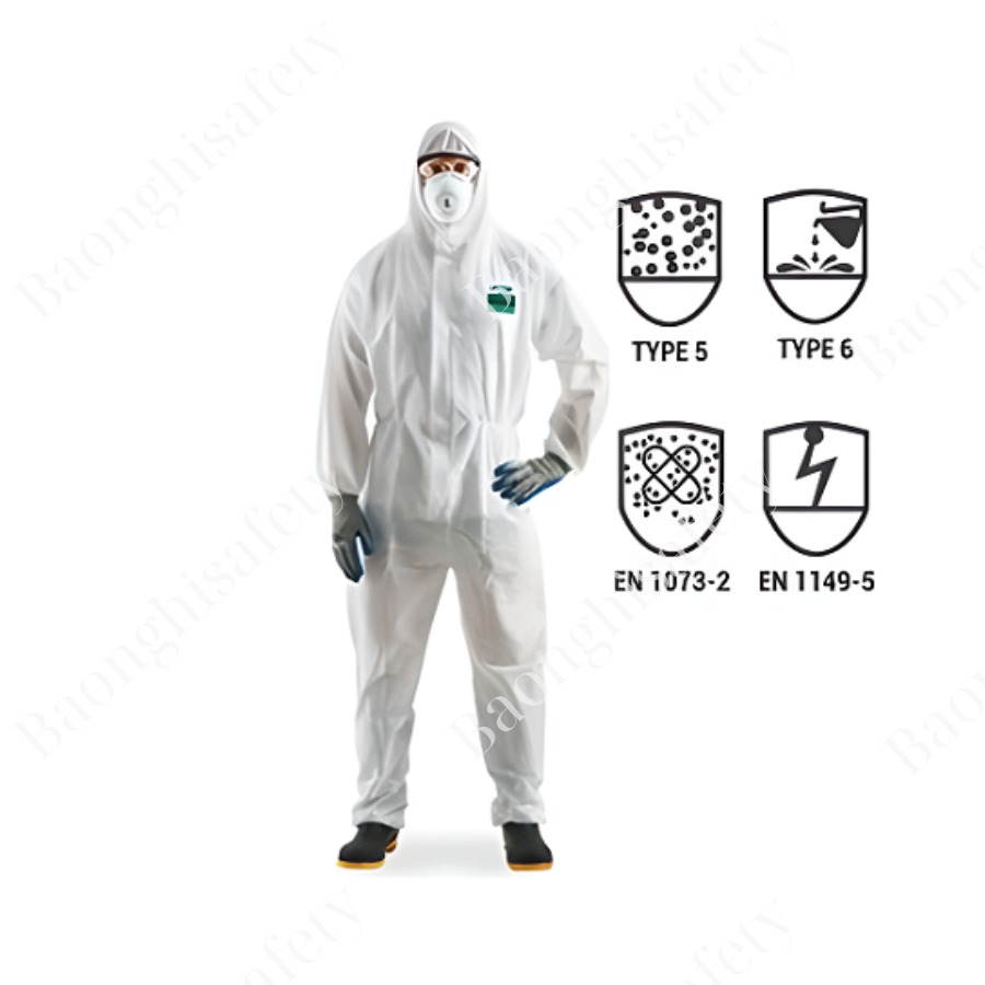 - Là loại sản phẩm dùng một lần Type 5 & 6 chống hóa chất lỏng , các loại bụi khô trong môi trường làm việc chuẩn châu âu